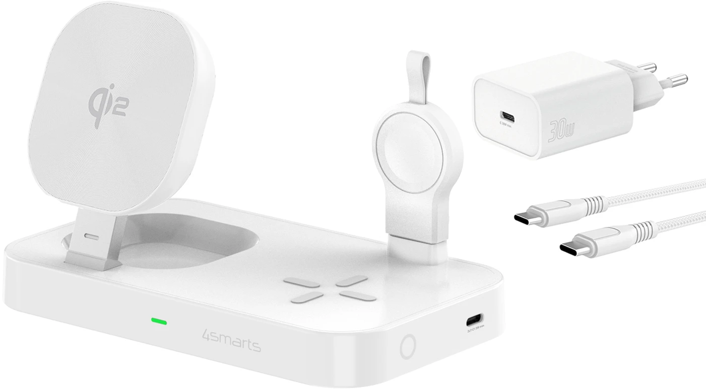 4Smarts Qi2 Ladestation Trident mit Charger für Samsung Watch Weiß