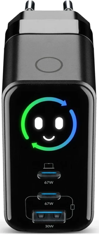 Das PowerView IQ 67W Wandladegerät-Set gehört zur neuen Produktreihe von Cellularline, die für hohe Leistung, volle Kontrolle und maximalen Komfort entwickelt wurde. Das integrierte Smart-TFT-Display ermöglicht die Echtzeitüberwachung der Ladeparameter jedes Anschlusses, einschließlich abgegebener Leistung, Wattzahl und Temperatur, und gewährleistet so Transparenz und Sicherheit während der Nutzung. Ausgestattet mit zwei 67W USB-C-Anschlüssen, einem 30W USB-A-Anschluss und einem 150 cm langen 5A/100W USB-C-Kabel (im Lieferumfang enthalten) ermöglicht es das gleichzeitige Laden mehrerer Geräte. Die GaN+-Technologie sorgt für hohe Leistung in einem kompakten Design, während der klappbare Stecker die Tragbarkeit verbessert und das Ladegerät beim Transport schützt.
